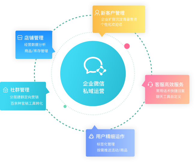 集合移动店铺及客户管理能力,实现企业微信的升级强化,为商户提供全面精细的私域运营服务