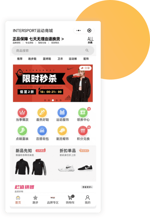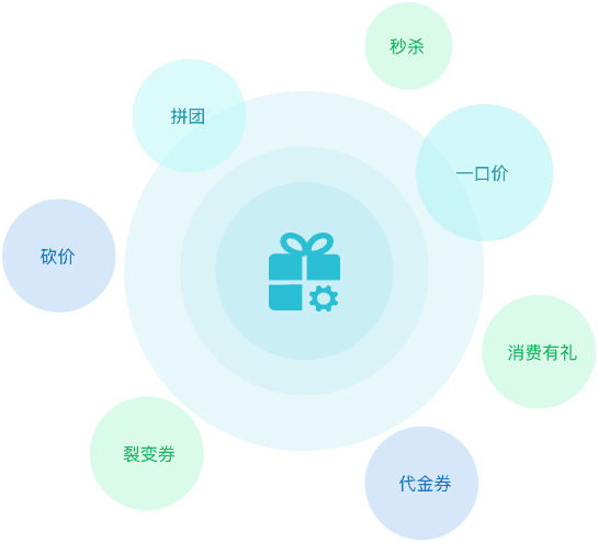 拼团、砍价、直播等多种营销插件组合营销刺激客户购买,通过微信社交快速分享裂变,带动商家业绩高效增长